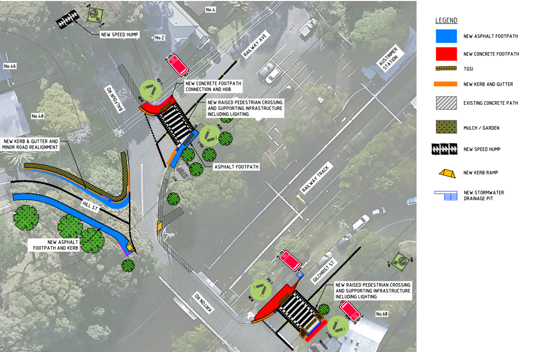 - A new raised pedestrian crossing at Railway Avenue close to Balfour Road
