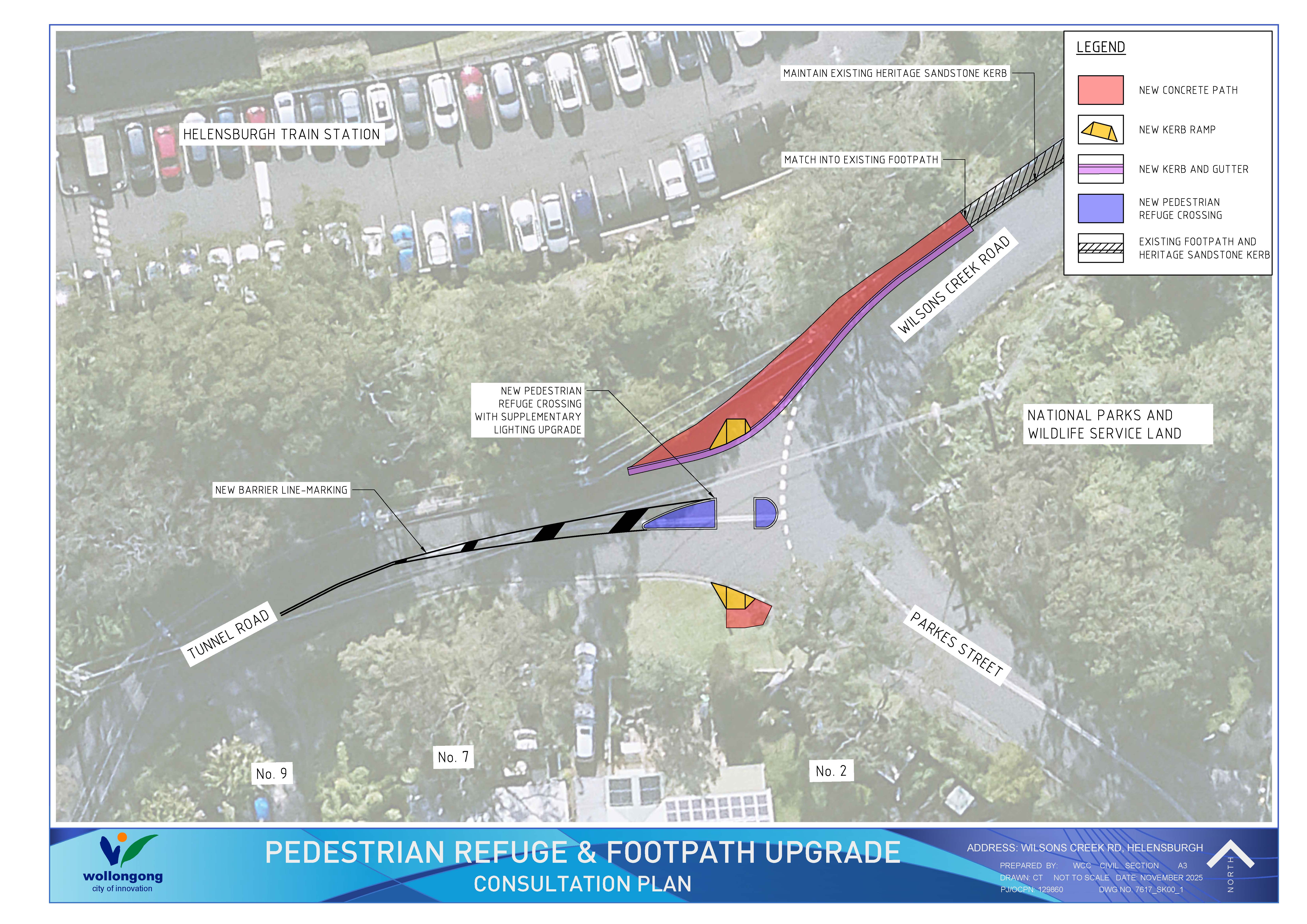 - A new pedestrian refuge island at the intersection of Tunnel Road and Parkes Street.