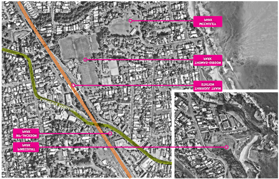 Pinecourt Park in Austinmer presents challenges with distance to nearest train station, approximately 1.5km, limited visibility at night, and proximity to existing residential homes.